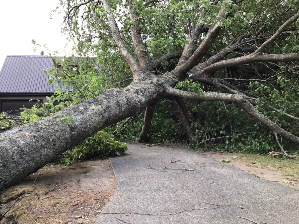 Within the town damage was from trees falling, These two photos are just one tree that fell.
