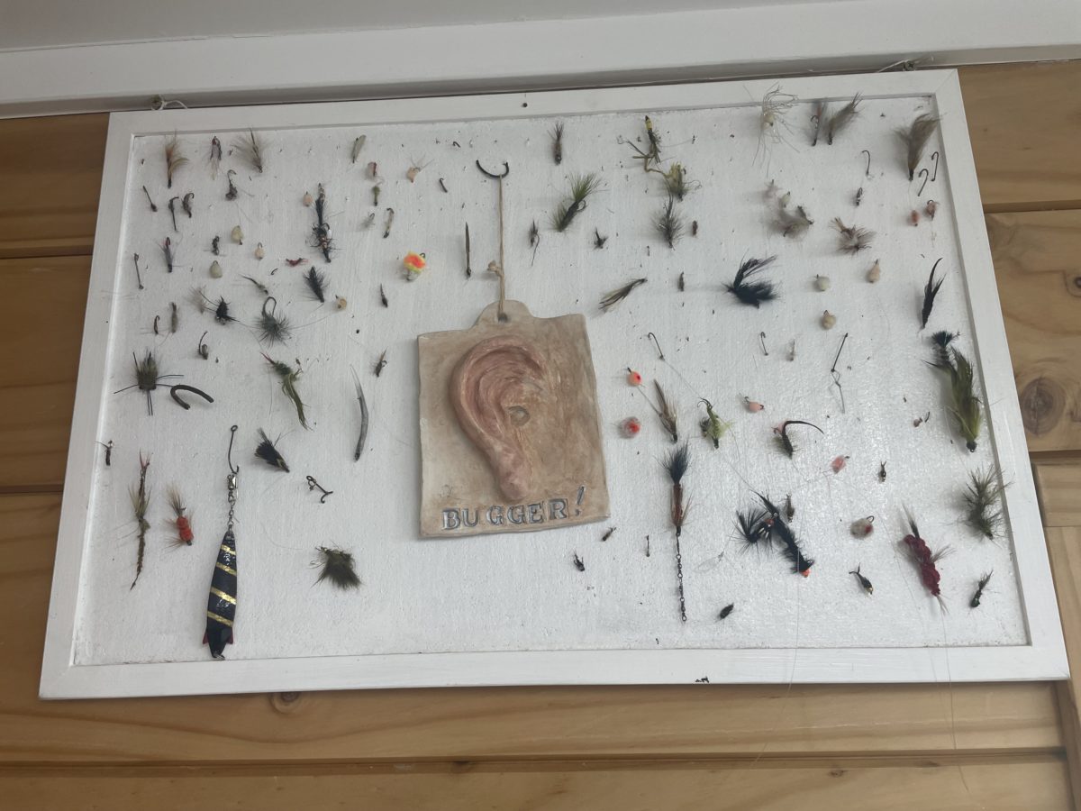 This board, with some of the flies extracted from patients, has interested me. On occasions at the surgery someone is waiting with a fly in their ear or in their cheek awaiting a Dr or Nurse to extract the offending fly painlessly, which causes sympathy or a suppressed laugh by those in attendance at the unfortunate victim.I was occasionally asked, at the river, if I could extract a fly that was embedded in some exposed part of an angler and initially, with pliers on my pocket knife, I could extract a fly – causing a spurt of blood and a yelp from the victim and for me the easing of my conscience was that it saved a visit to the Doctor. But there are ways to extract a fly which I wrote about in one of my first blogs.