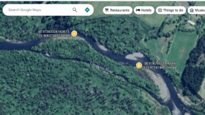 Subsequently, Richard Kemp raised this point at the latest Taupo Fishery Advisory Committee (TFAC) meeting. It was suggested that a track down the Log Pool island would enable easier use of this part of the river. DOC liked the idea and have actioned their plan quickly. Following a reconaissance trip, a team of five were deployed to establish a track of around 300m down the Log Pool island. The below screen shot has stars to mark and two ends of the newly established track.